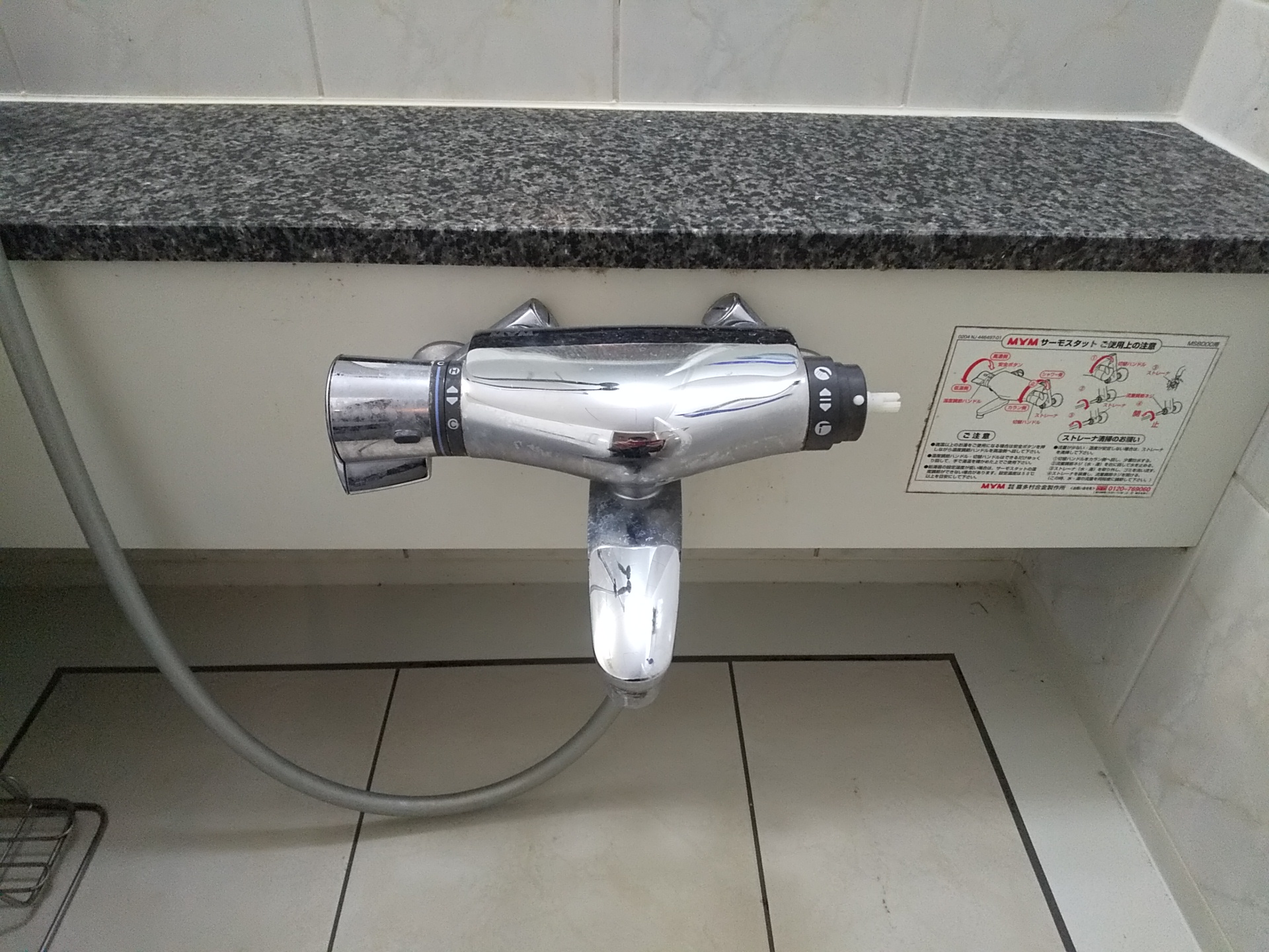 浴室水栓はレバーが完全に破損しており、内部の劣化も進行している状態でした。