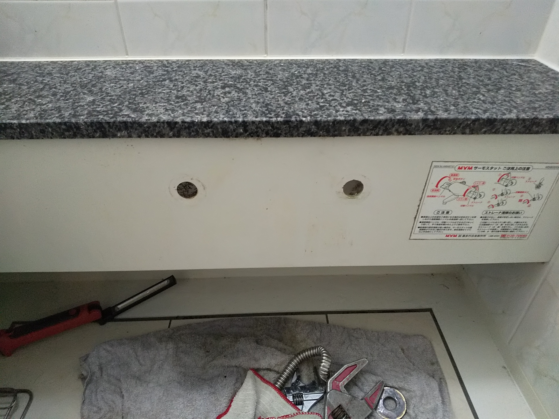 浴室・洗面ともに既存の水栓を撤去し、新しい水栓へ交換を行いました。