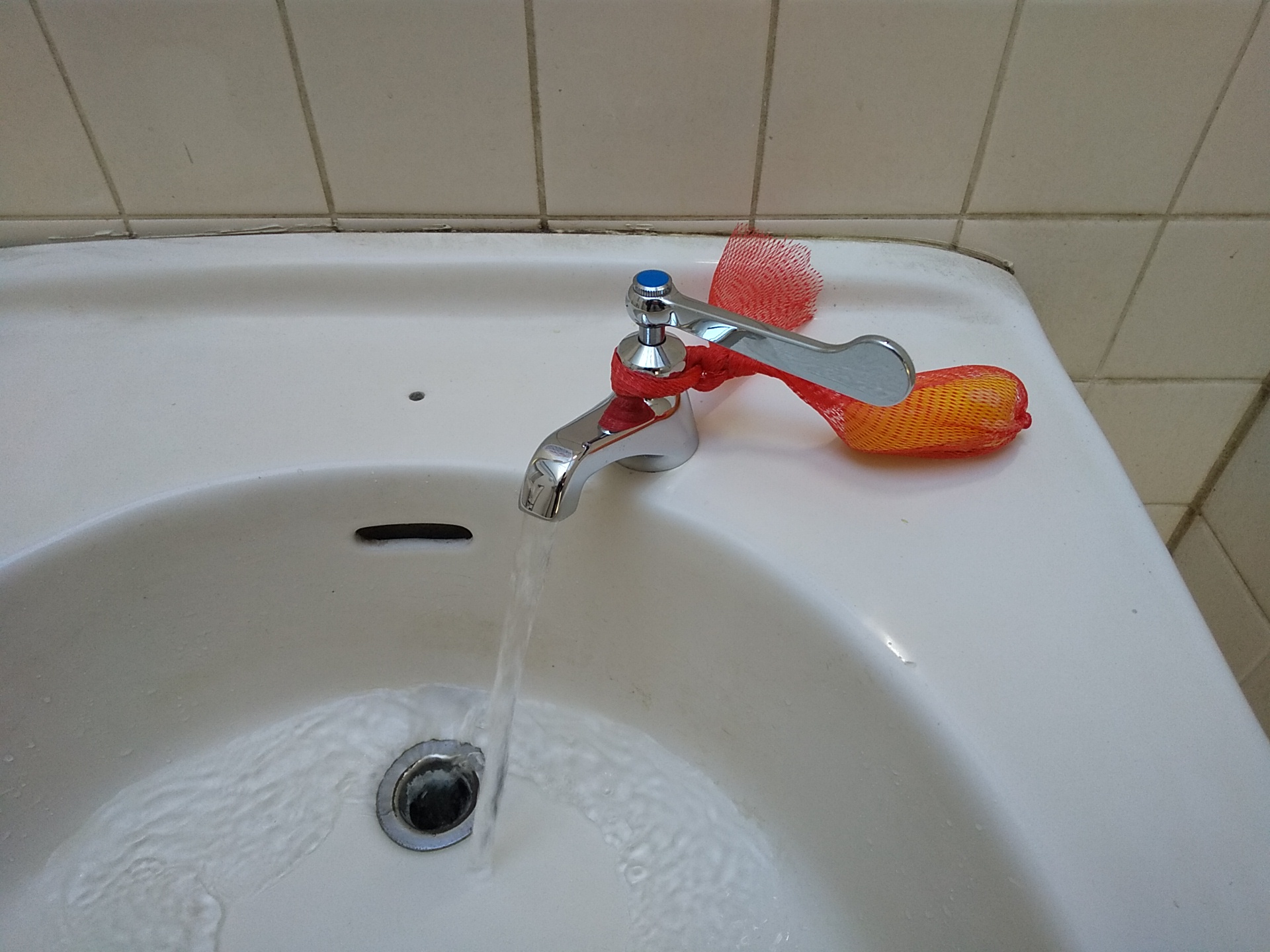 手洗い水栓のレバーハンドルが折れてしまい、水の出し止めができないとのことでご連絡をいただきました。