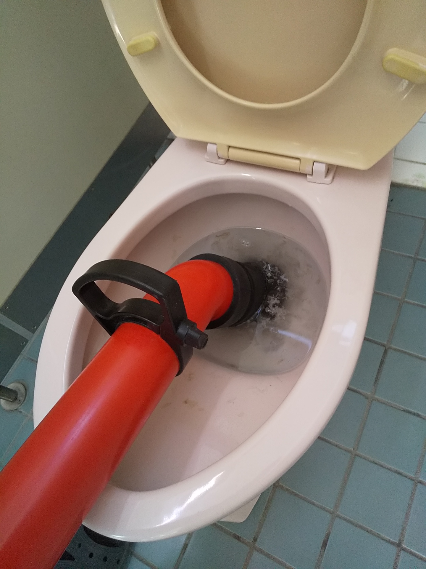 まず薬剤(ピーピースルー)を使用して内部の汚れを分解し、その後専用のポンプ工具を使って詰まりを除去しています。段階的に負荷をかけながら通りを改善していく形で対応しました。