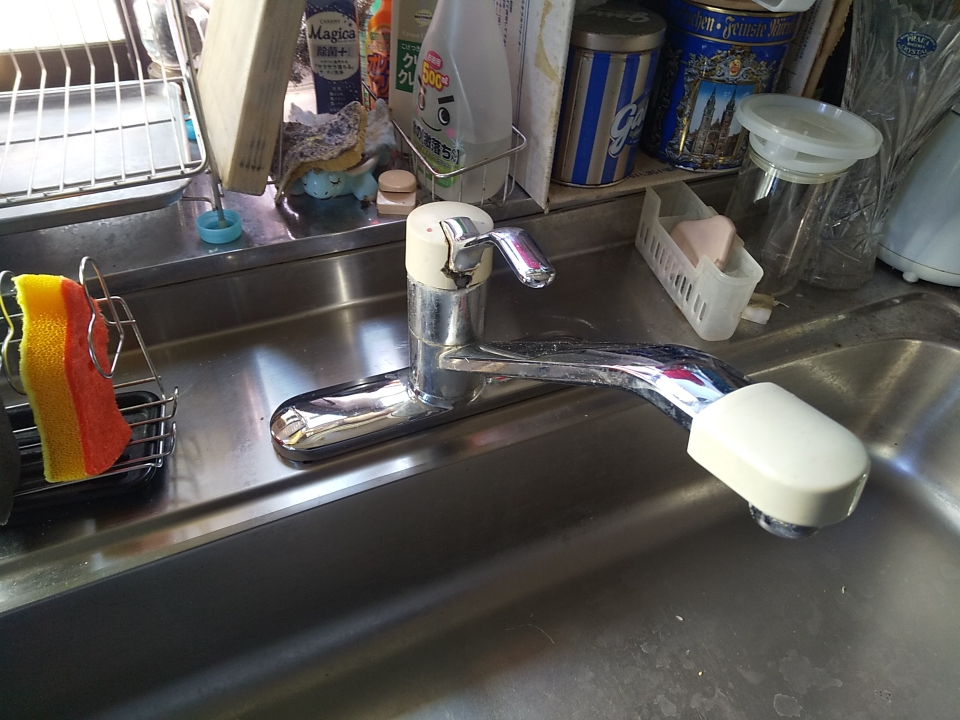 レバー付近からのにじみがあり、使用中に水漏れが気になる状態でした。よくある症状だったので、内部部品の劣化が進んでいると思われます。