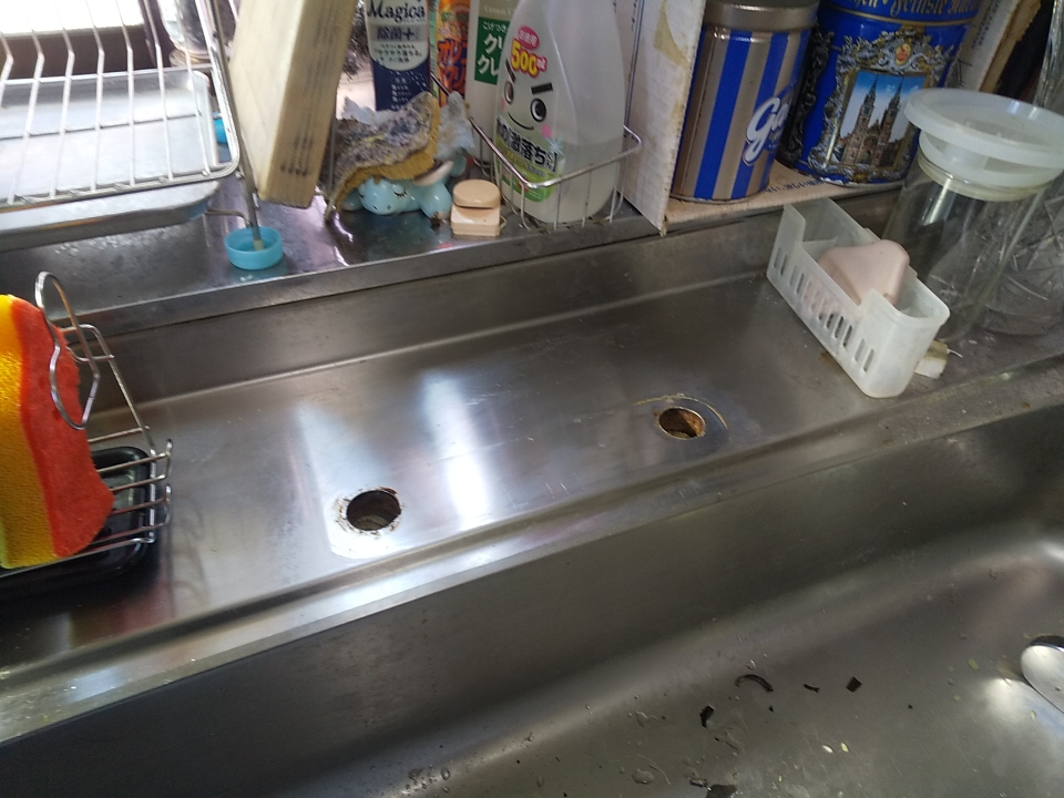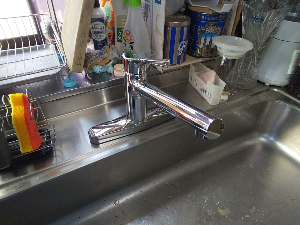 既存水栓を撤去し、TOTOのTKS05310Jへ交換しました。シンプルなシングルレバータイプで、扱いやすさを重視した構成です。
