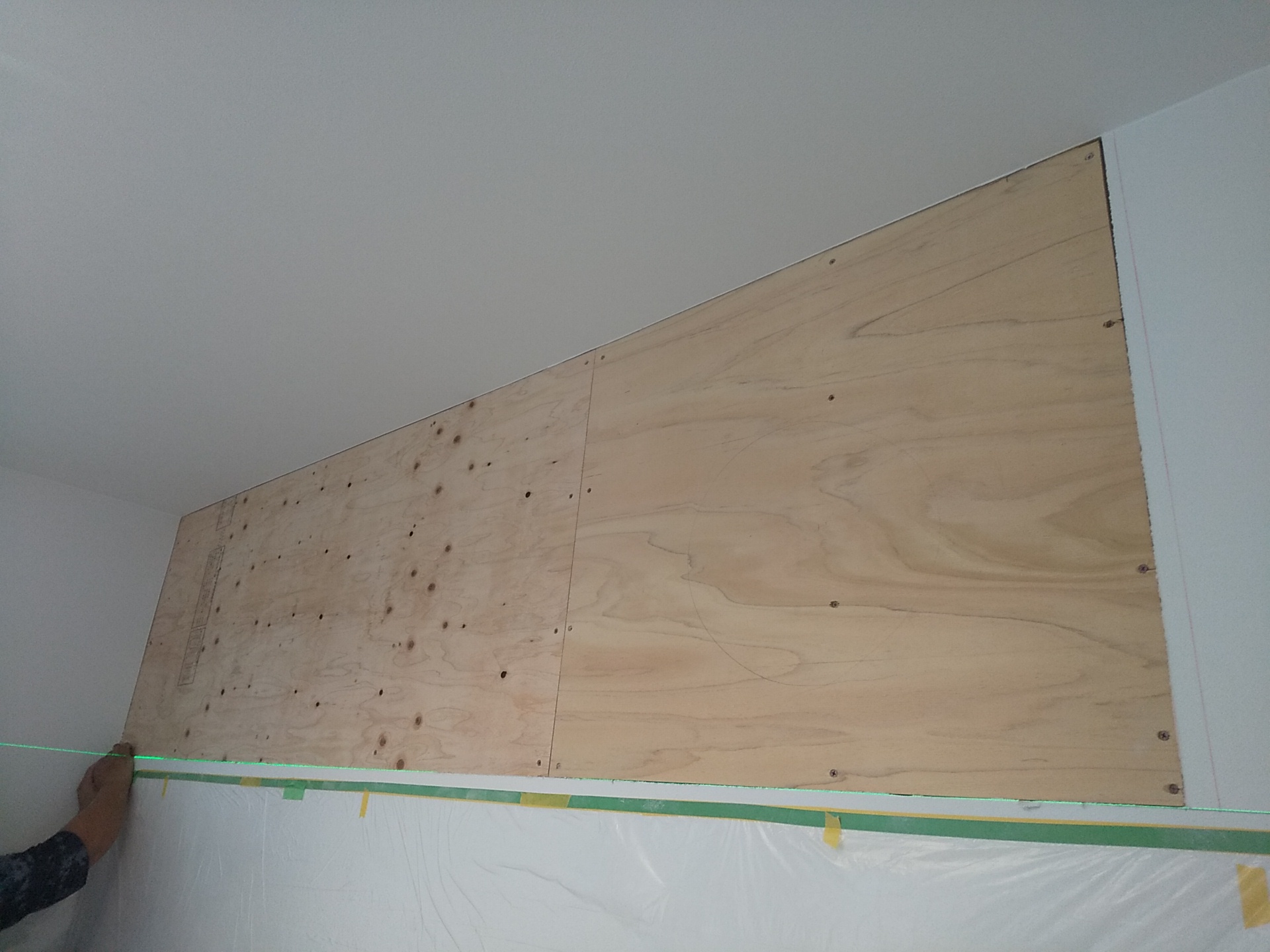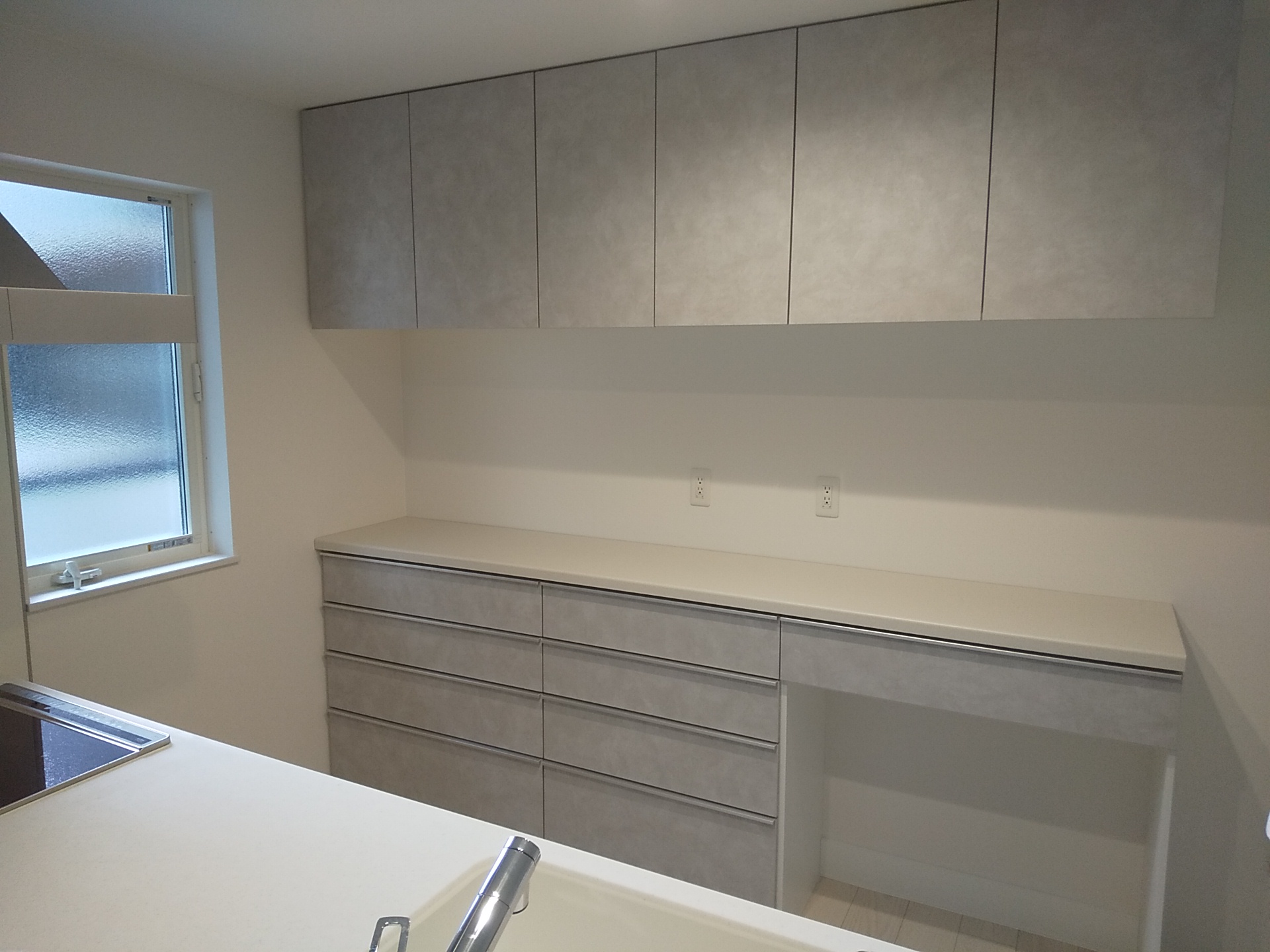 全幅は265cm、吊戸棚設置をご希望でしたので、下地を新しく張らせていただいての施工です。