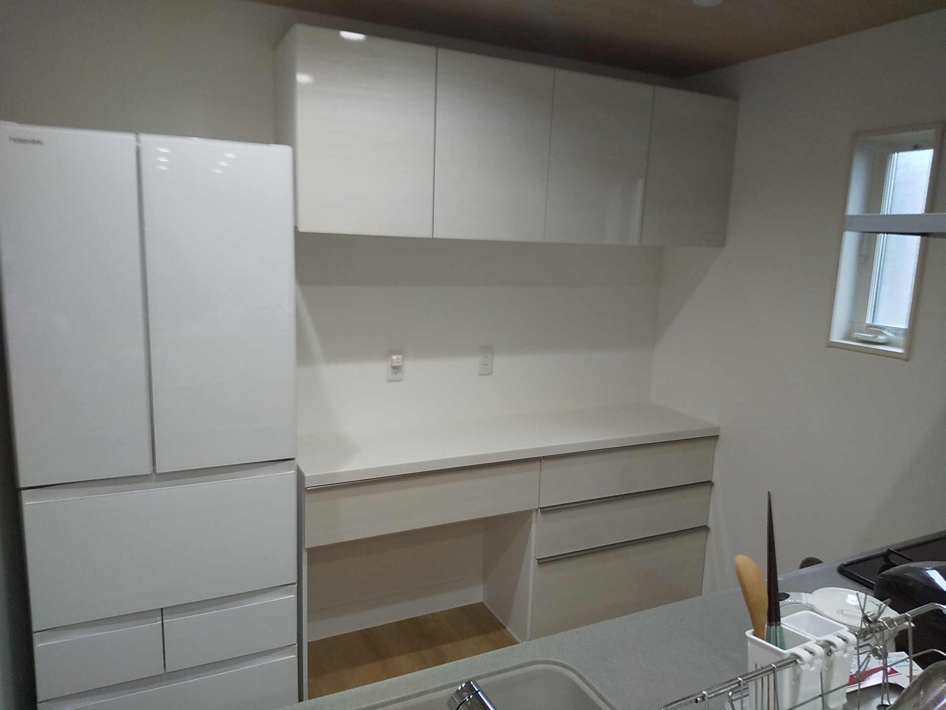 今回はコンセント移設の必要もなく、吊戸棚の下地も入っていたので、追加工事なしで設置となりました!