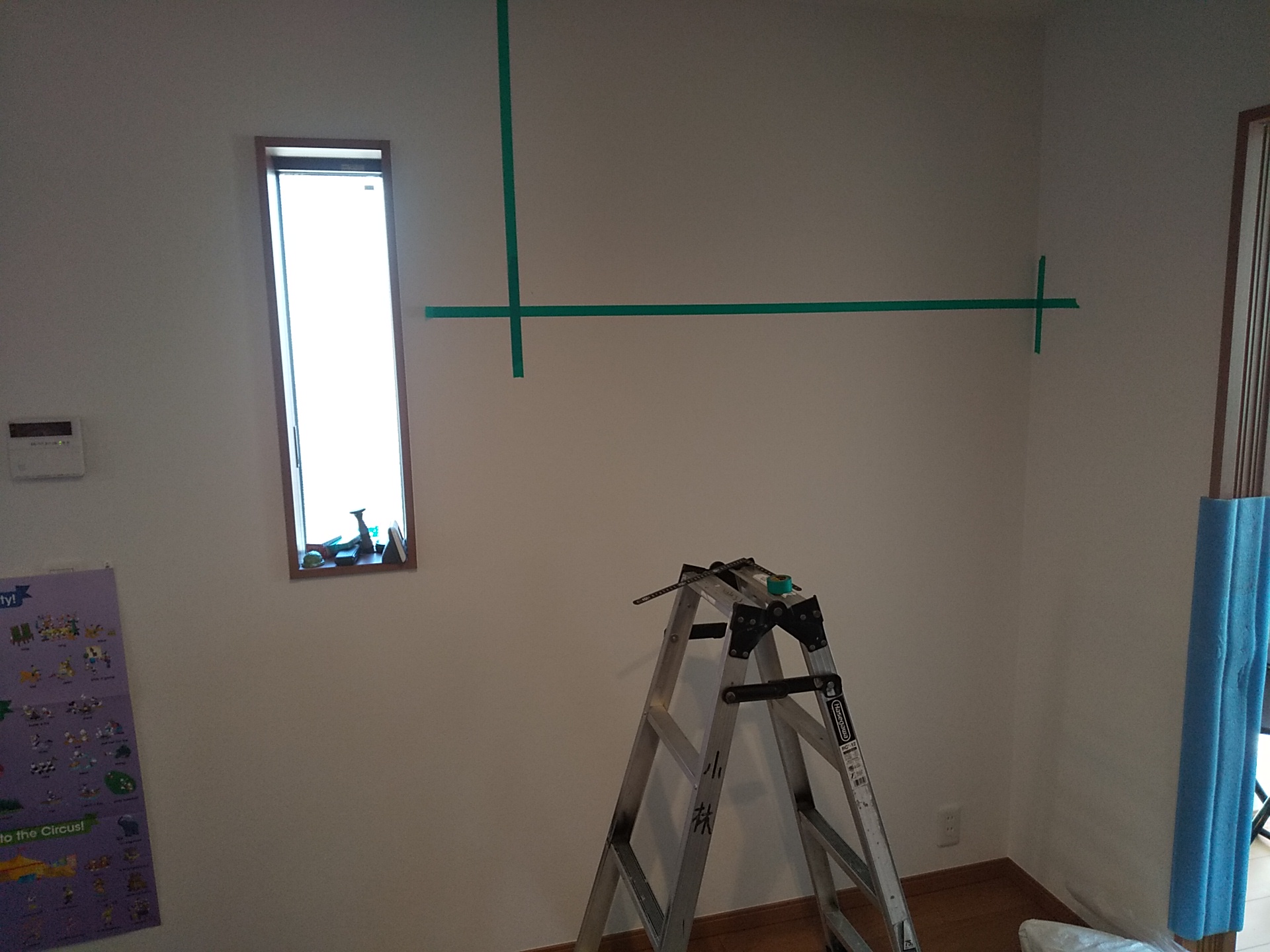 まずは壁面に位置出しを行い、水平や高さを確認しながら取付位置をマーキング。