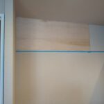 そのため、一度クロスを部分的に切り開き、内部に下地材を新たに施工。その後、下地位置を確認しながら吊戸棚の取り付けを行っていきます。