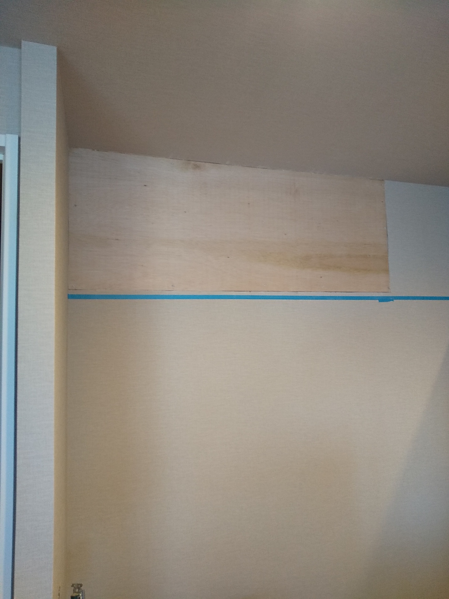 吊戸棚は重量があるため、しっかりとした下地が必須になります。下地が無い状態での取り付けは危険なため、今回は下地補強を行ったうえで安全に設置しました。