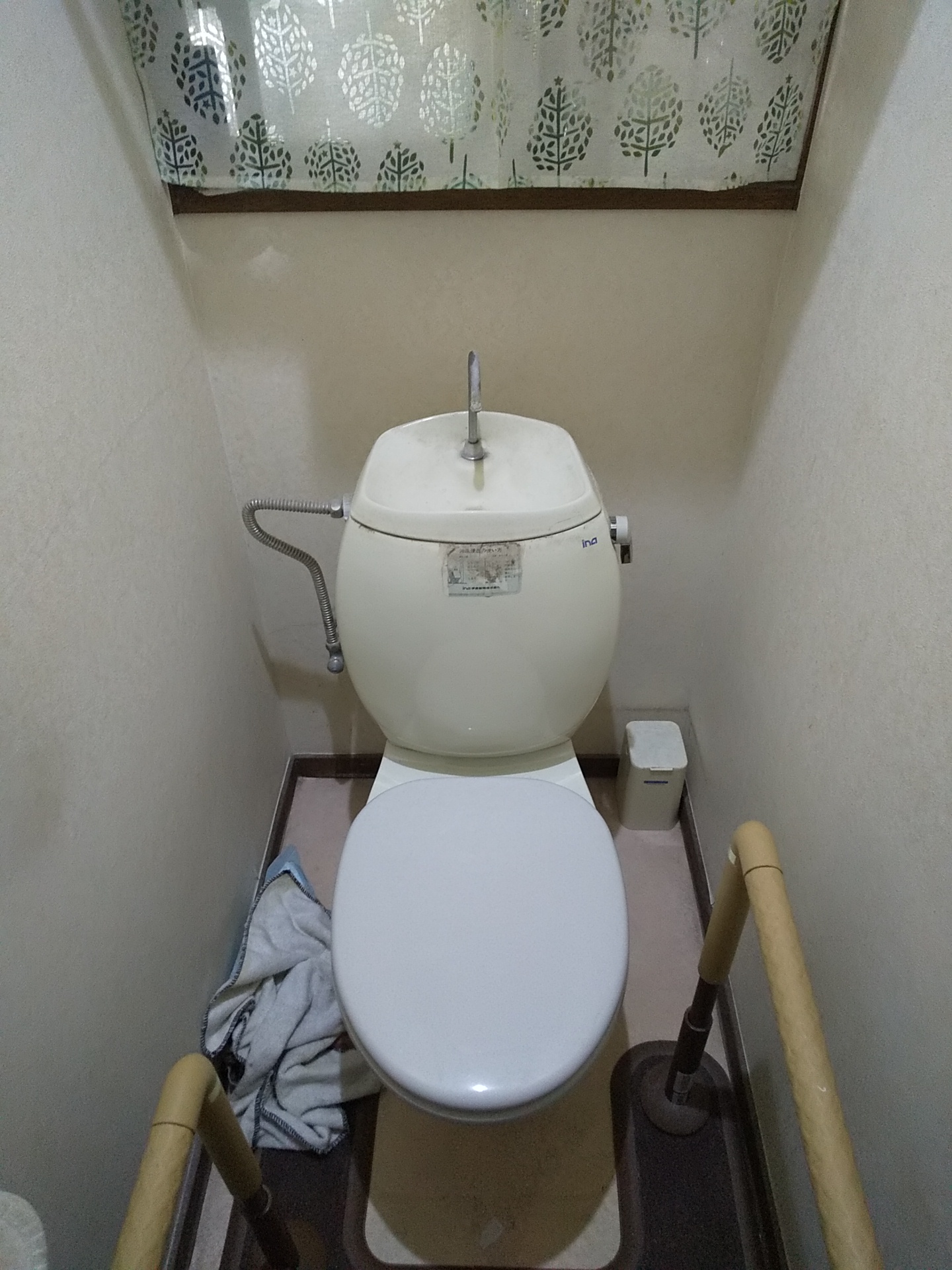 今回設置されていたトイレはかなり古い型で、タンクはina製でした。inaといえば、INAXの前の名前なので、現LIXILの前がINAXになるので、かなり古いトイレということになります。