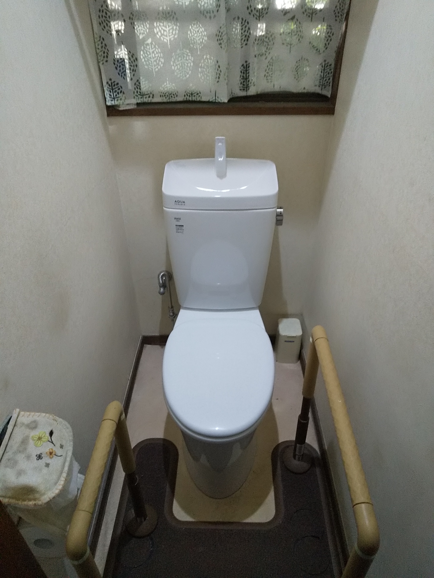 ということでトイレ丸ごと交換になるのですが、トイレ内の両脇に手すりが設置されていたため、なるべくスリムなトイレをご提案させていただきました。