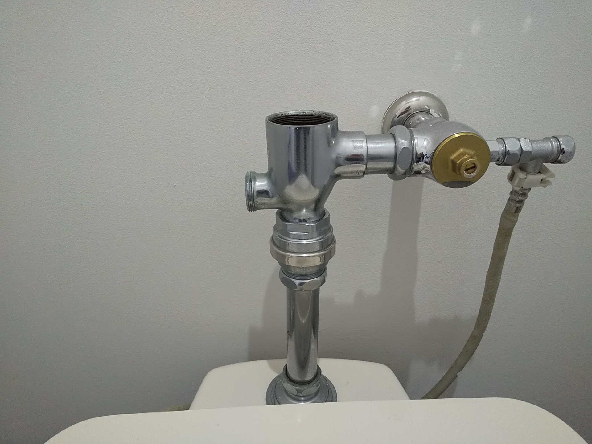使用後も水が止まりきらず、常に流れ続けてしまう症状でした。フラッシュバルブ内部の摩耗が進んでいる印象です。