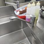 既存の台所水栓を撤去し、新しい水栓へ交換を行いました。