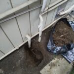 外壁沿いの地中からじわじわと水がにじみ出ているとのことでご連絡をいただき、現地確認。掘ってみると、給水管の一部が経年劣化により傷み、そこから漏水している状態でした。