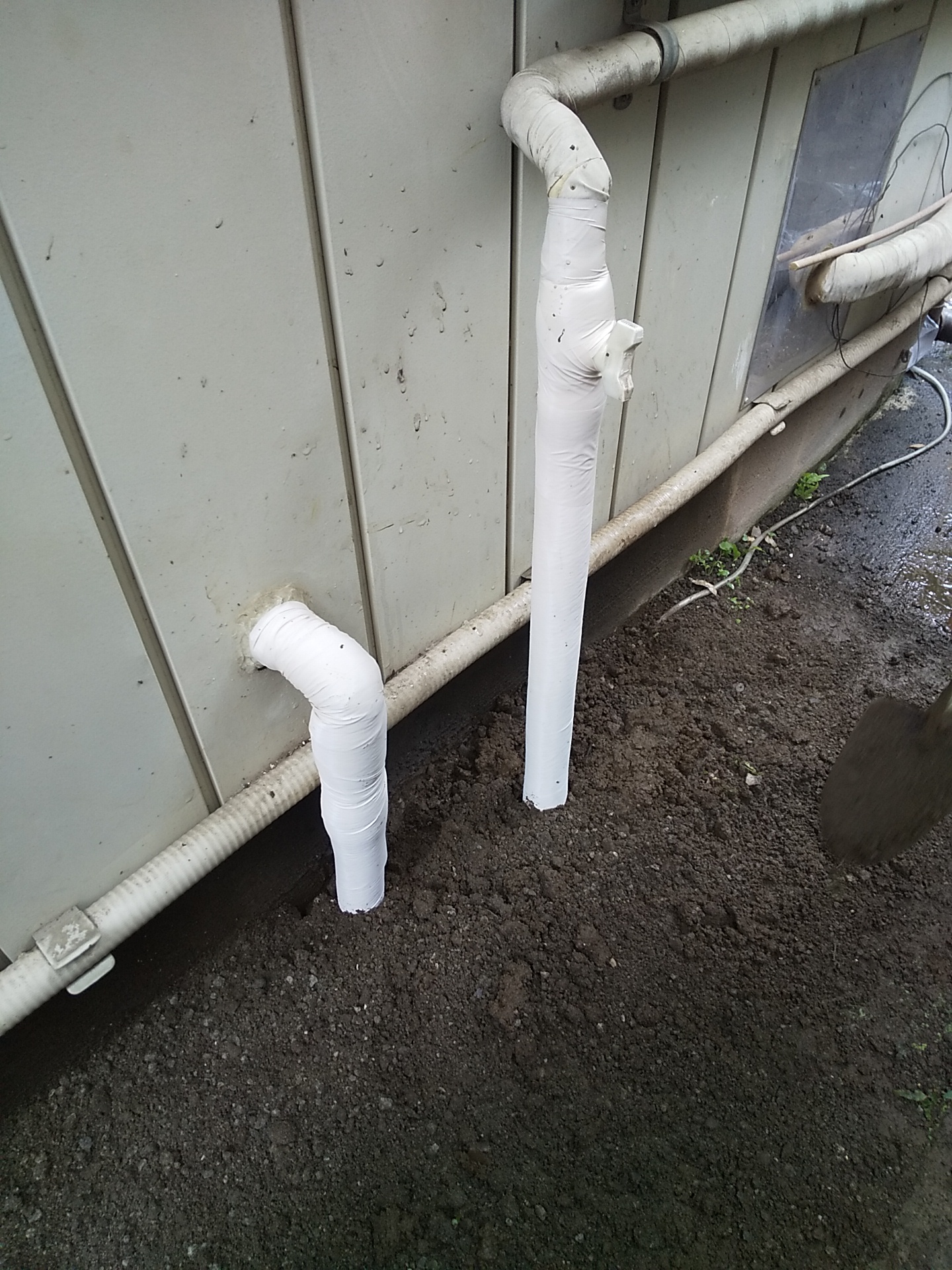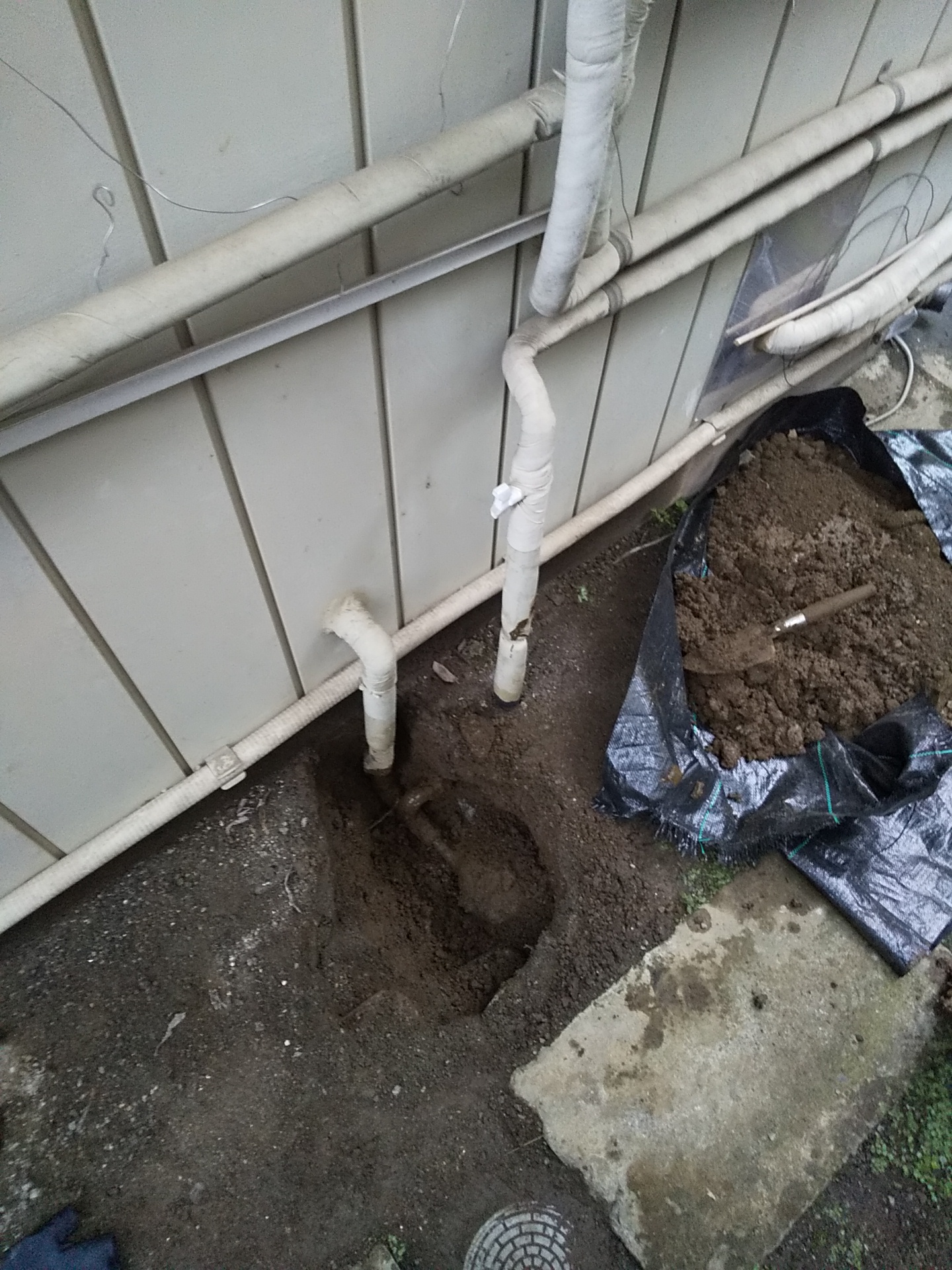 最後に配管を保温処理し、掘削箇所をしっかりと埋め戻して整地。見た目もできるだけ元の状態に近づけて完了です。