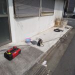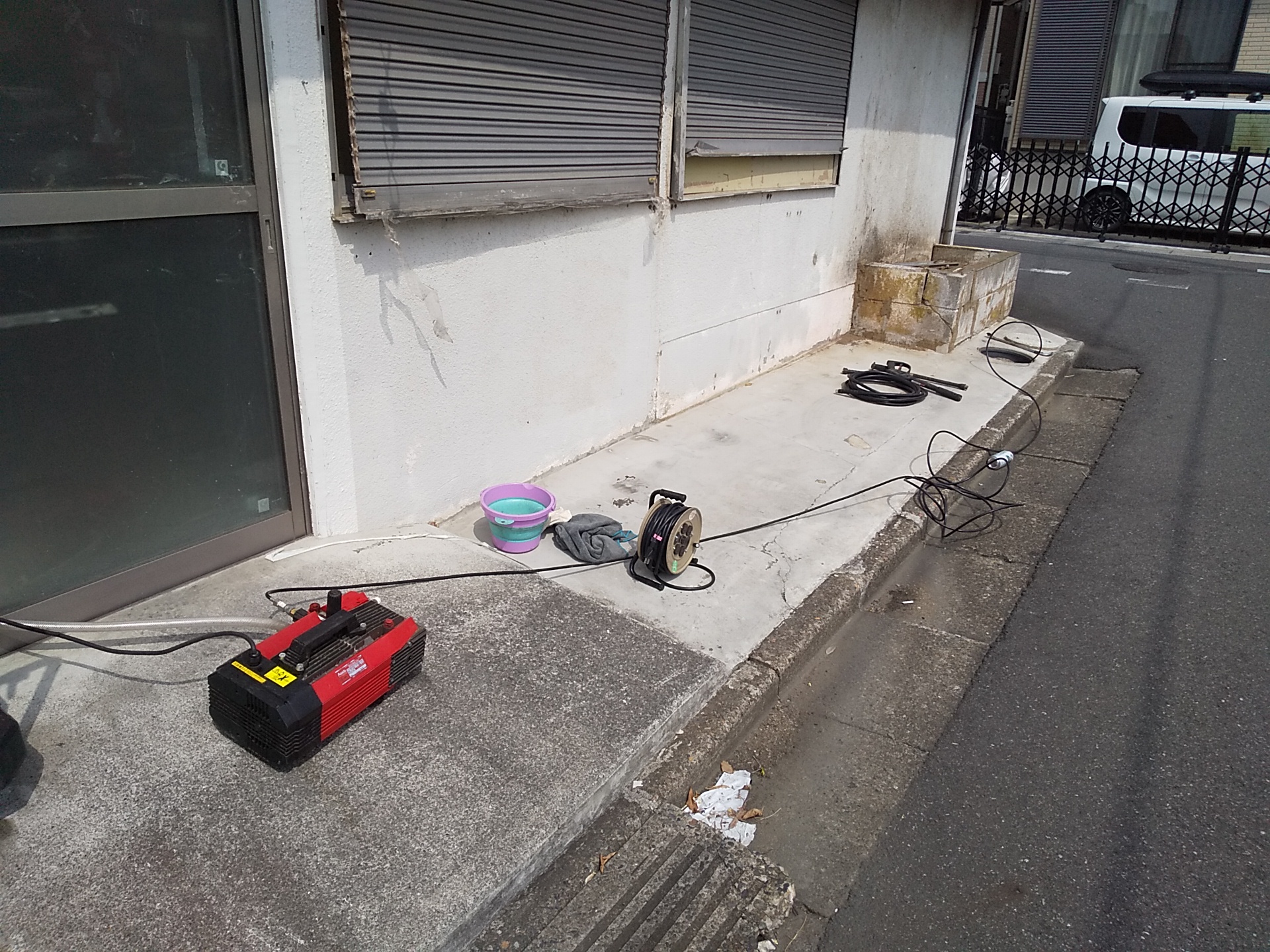 確認させていただくと、排水管が詰まっているようだったので、高圧洗浄機で詰まりを除去させていただきました。