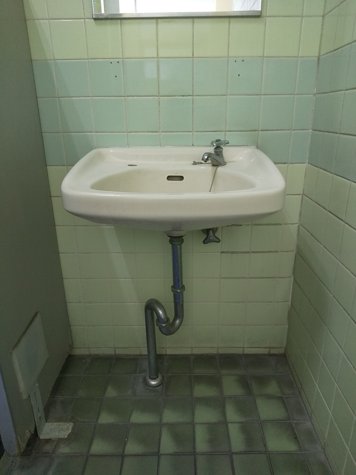 撤去してみると、手洗い器の排水管や陶器本体にも経年劣化が見られました。