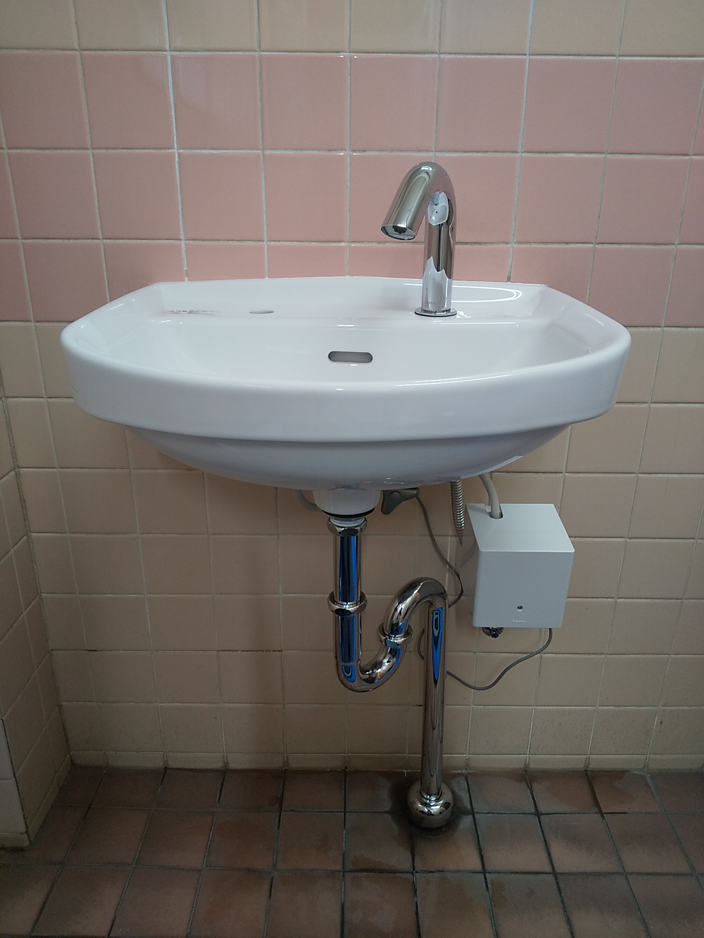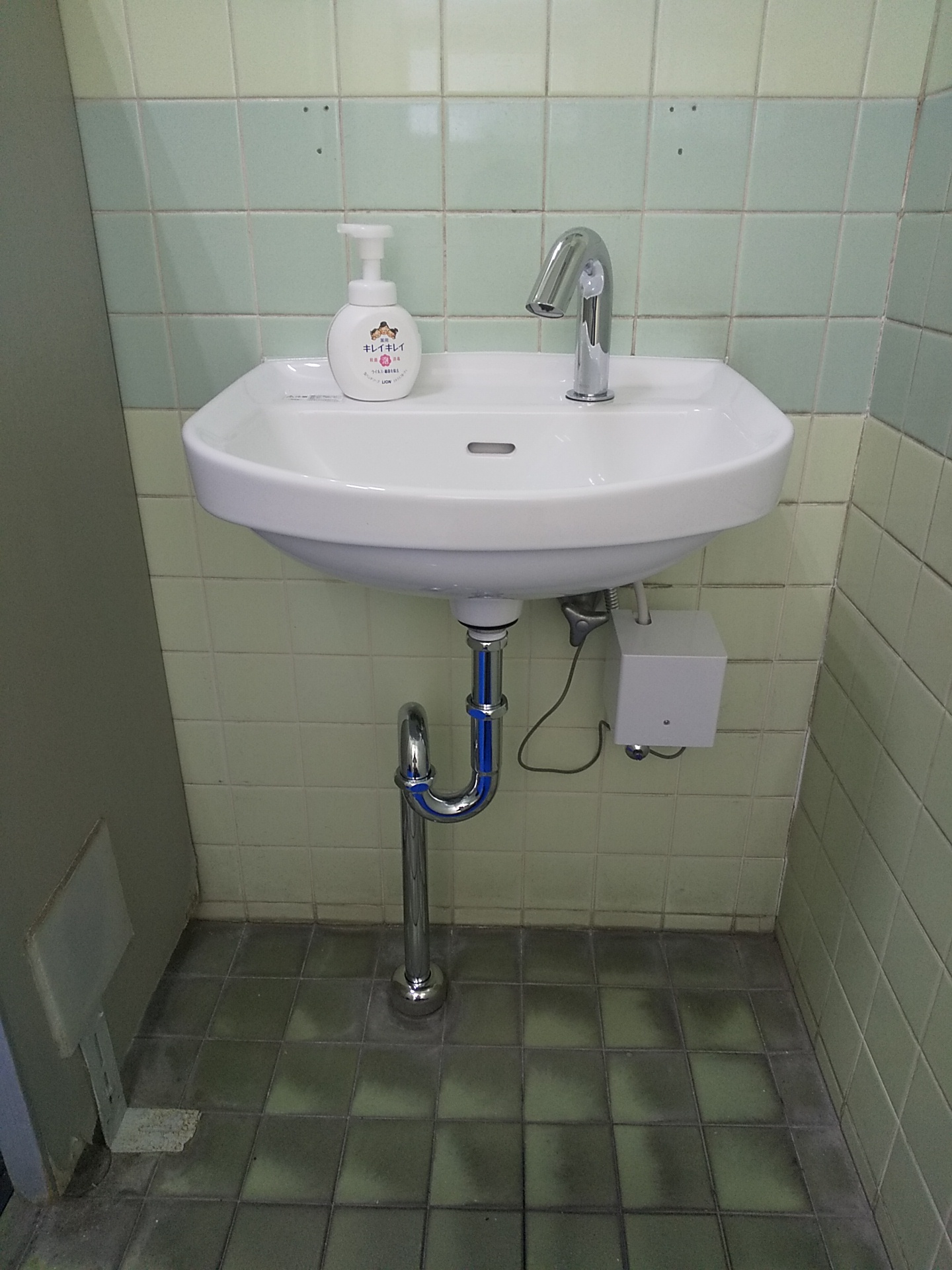 1. 小便器フラッシュバルブ水漏れ・洗面器自動水栓化|施工事例(前橋市関根町)