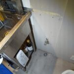 まず現地確認をしたところ、設置予定箇所の直下に排水管が通っていないことが判明しました。そのため、単純な取付ではなく、排水ルートを新しく作る必要がありました。