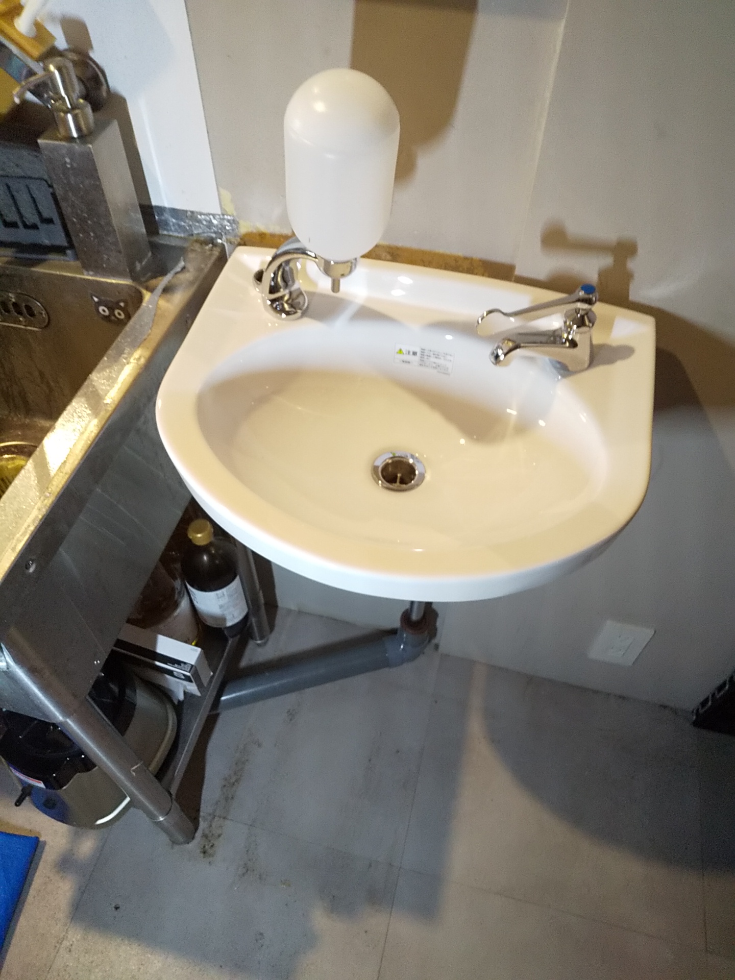 目黒区中央町の店舗厨房にて、手洗い器の新設工事を行いました。