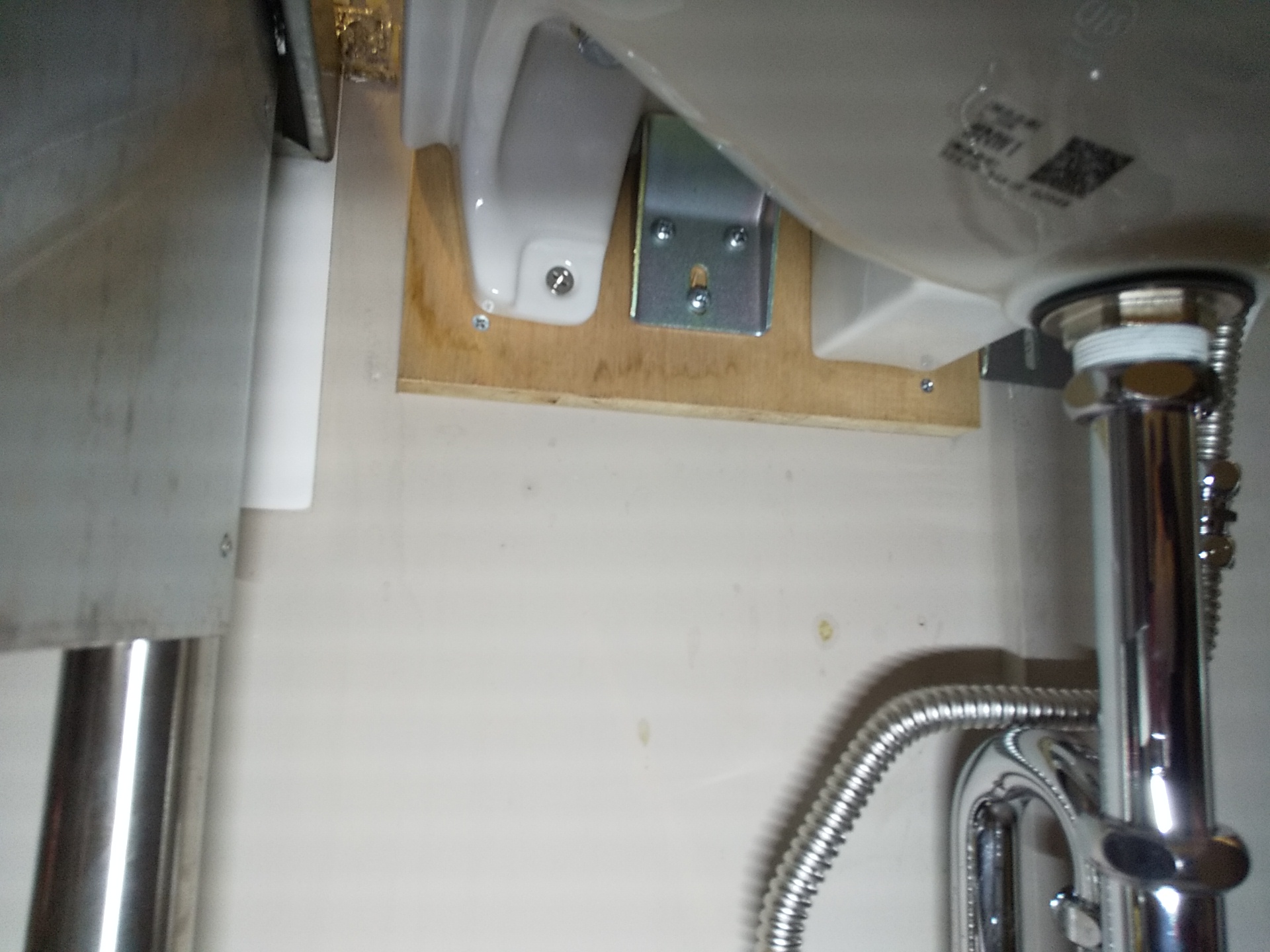 また、壁面はそのままでは強度が足りなかったため、補強を挟んで手洗い器を固定しました。陶器製の器具は意外と重量があるため、ここは手を抜けない部分です。しっかり下地を作ったうえで取り付けています。