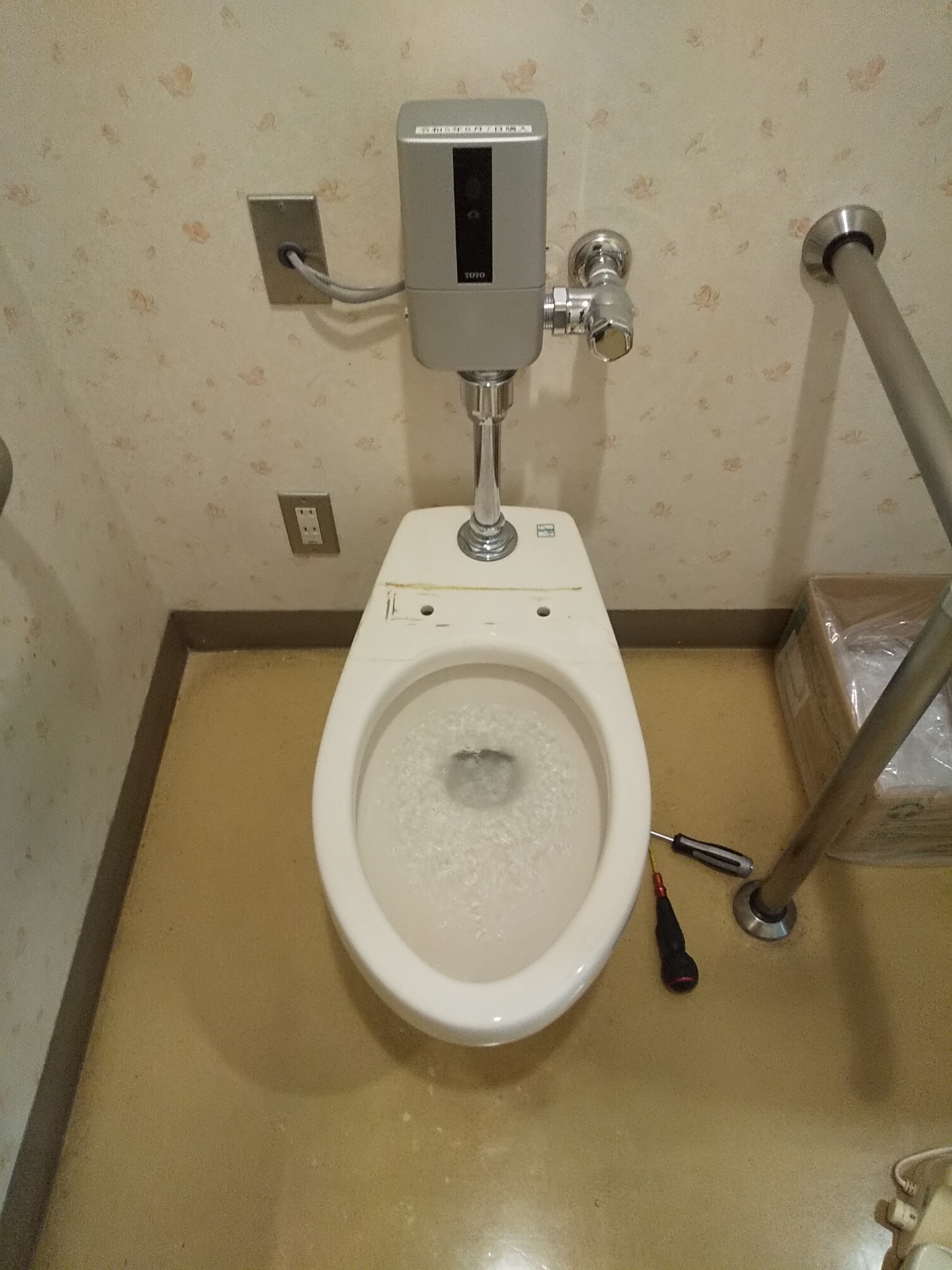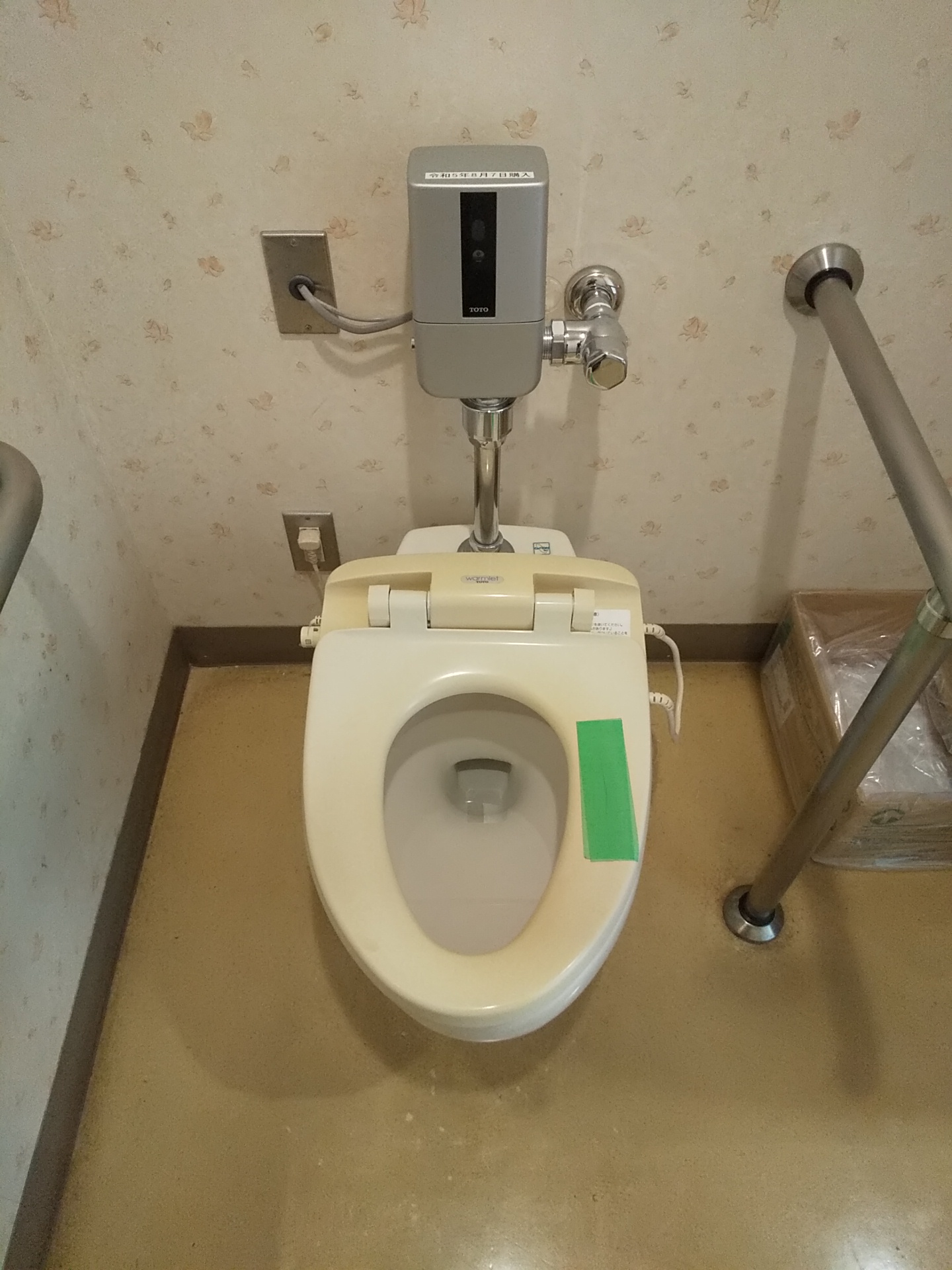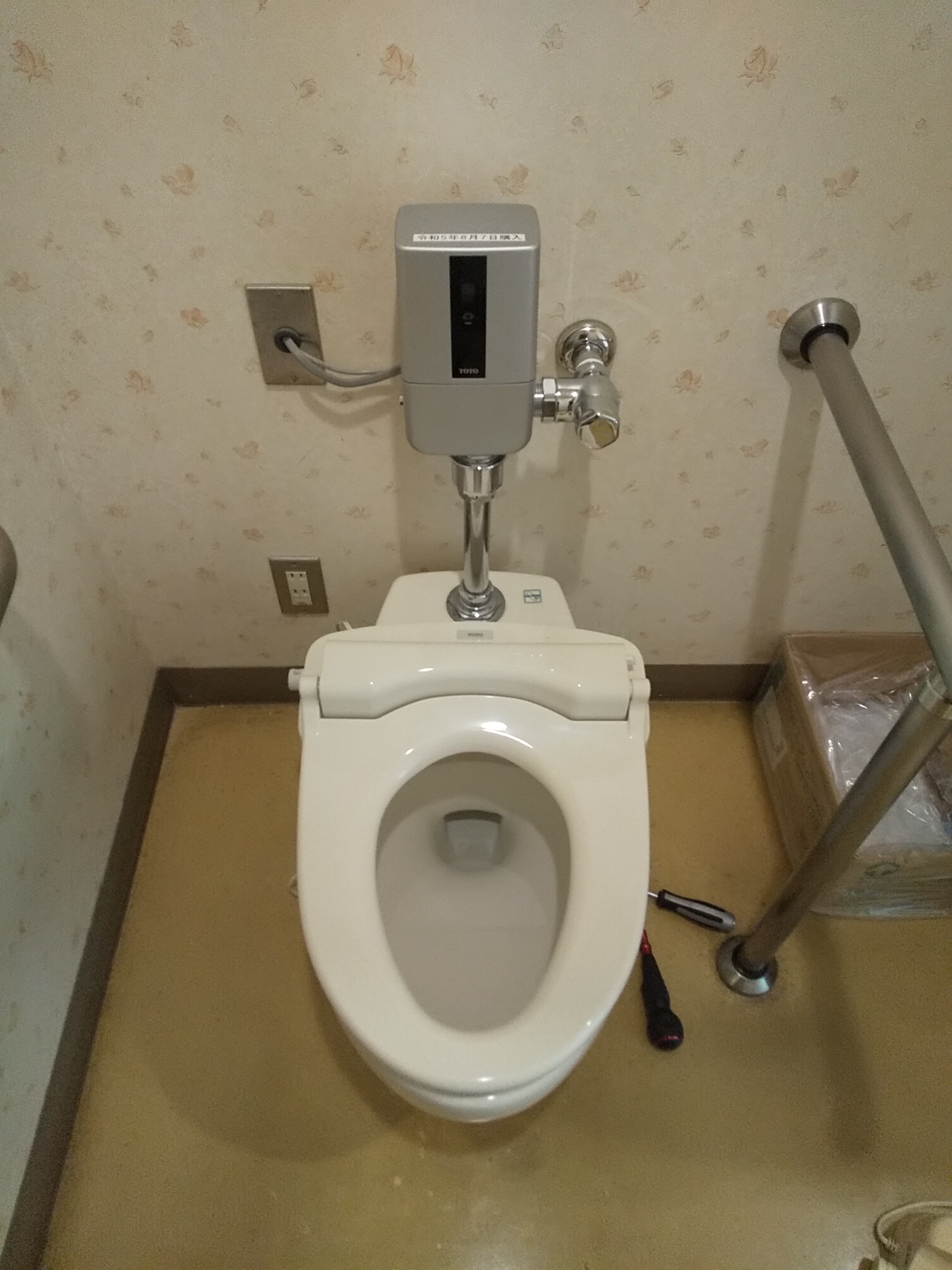 既存の暖房便座(TOTO製)を取り外し、新しい暖房便座へ交換を行っています。