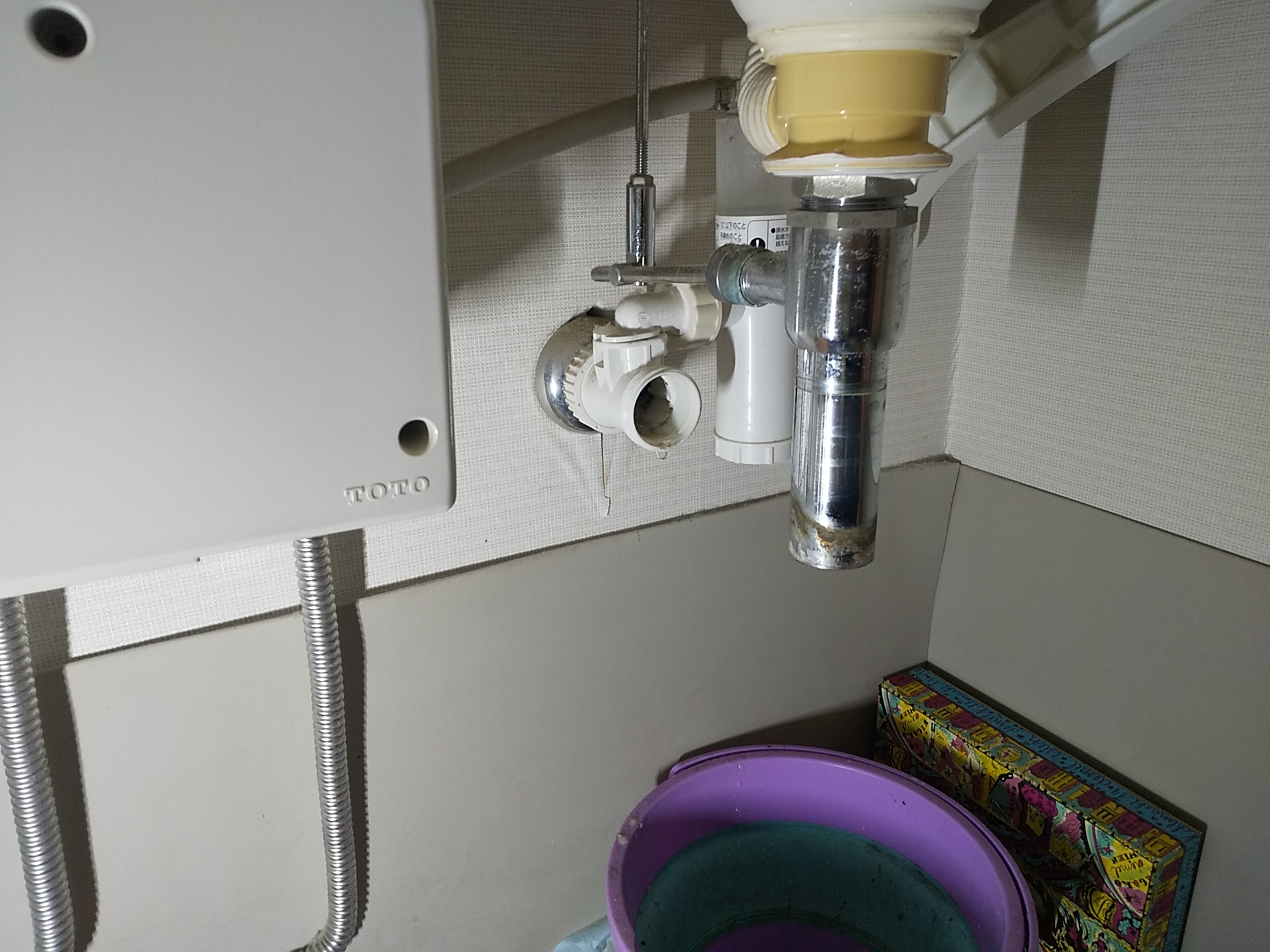洗面器の排水管から水漏れしているとのご相談をいただきました。