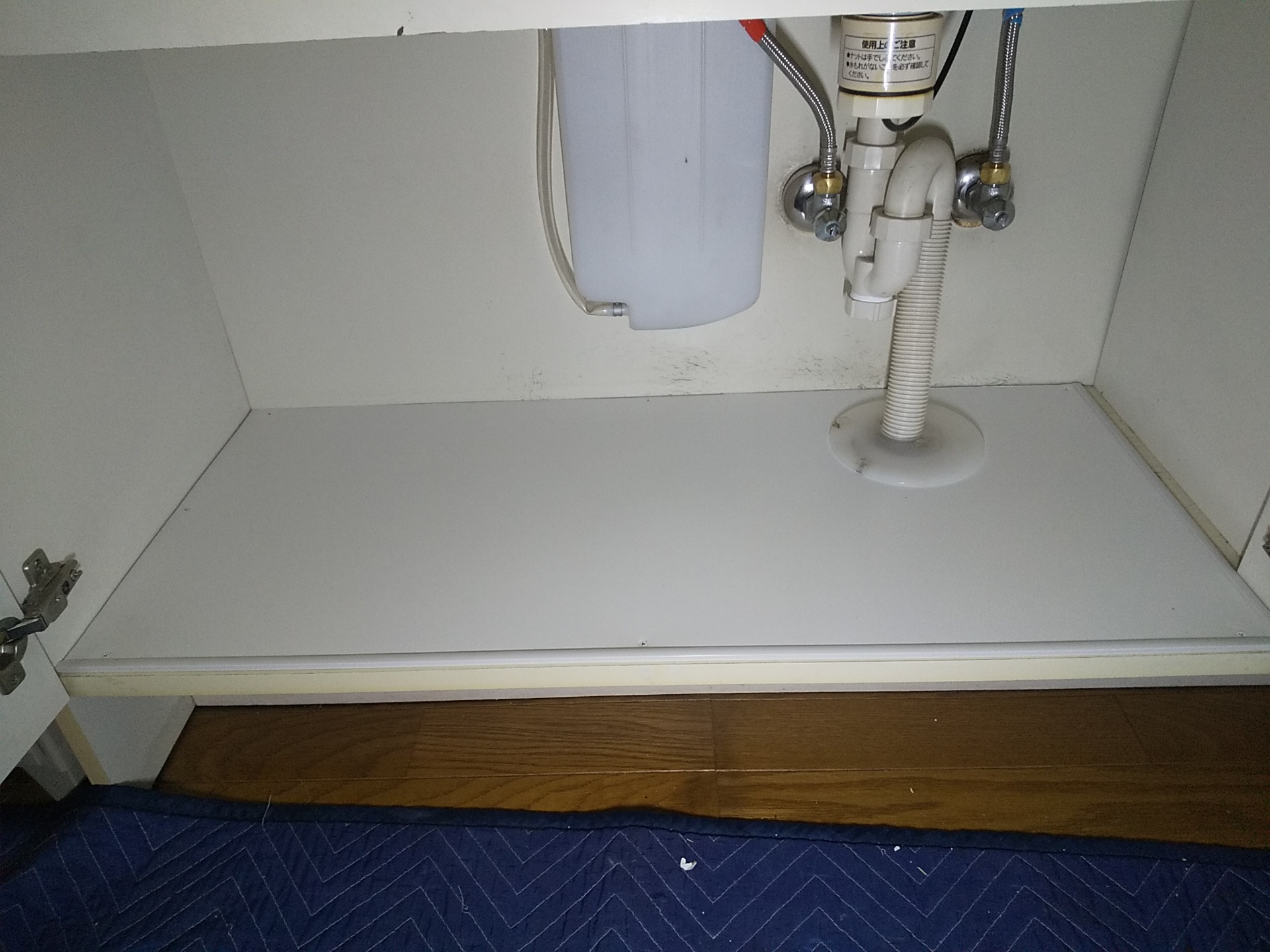 2. 洗面水栓の交換と収納床板補修工事|施工事例(さいたま市桜区)