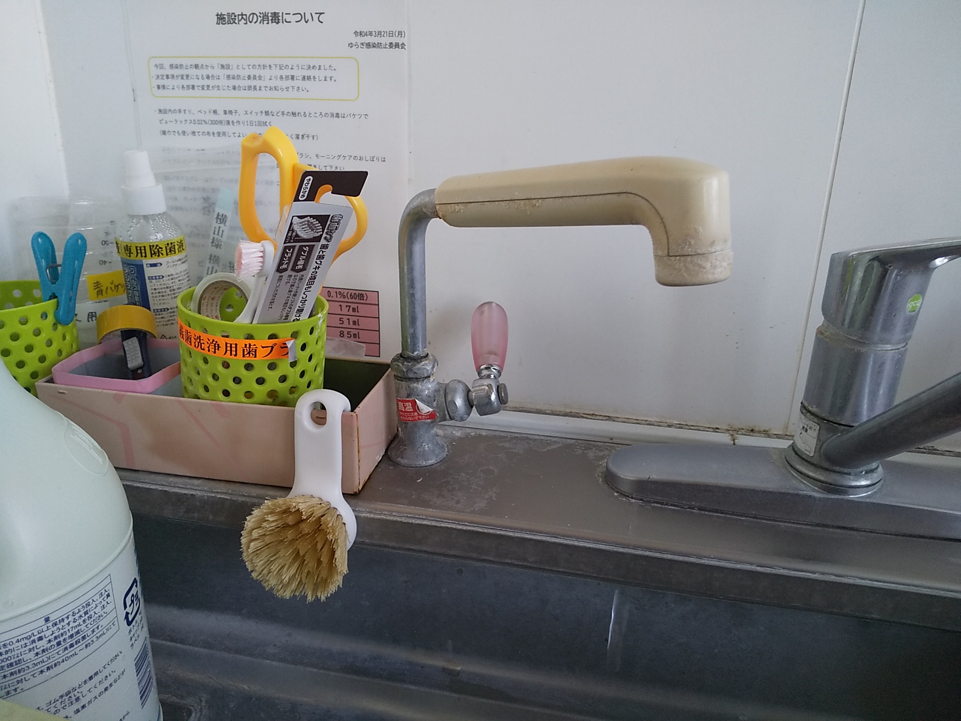 既存の熱湯専用水栓(TOTO製)を撤去し、イトミック製の水栓へ交換を行っています。
