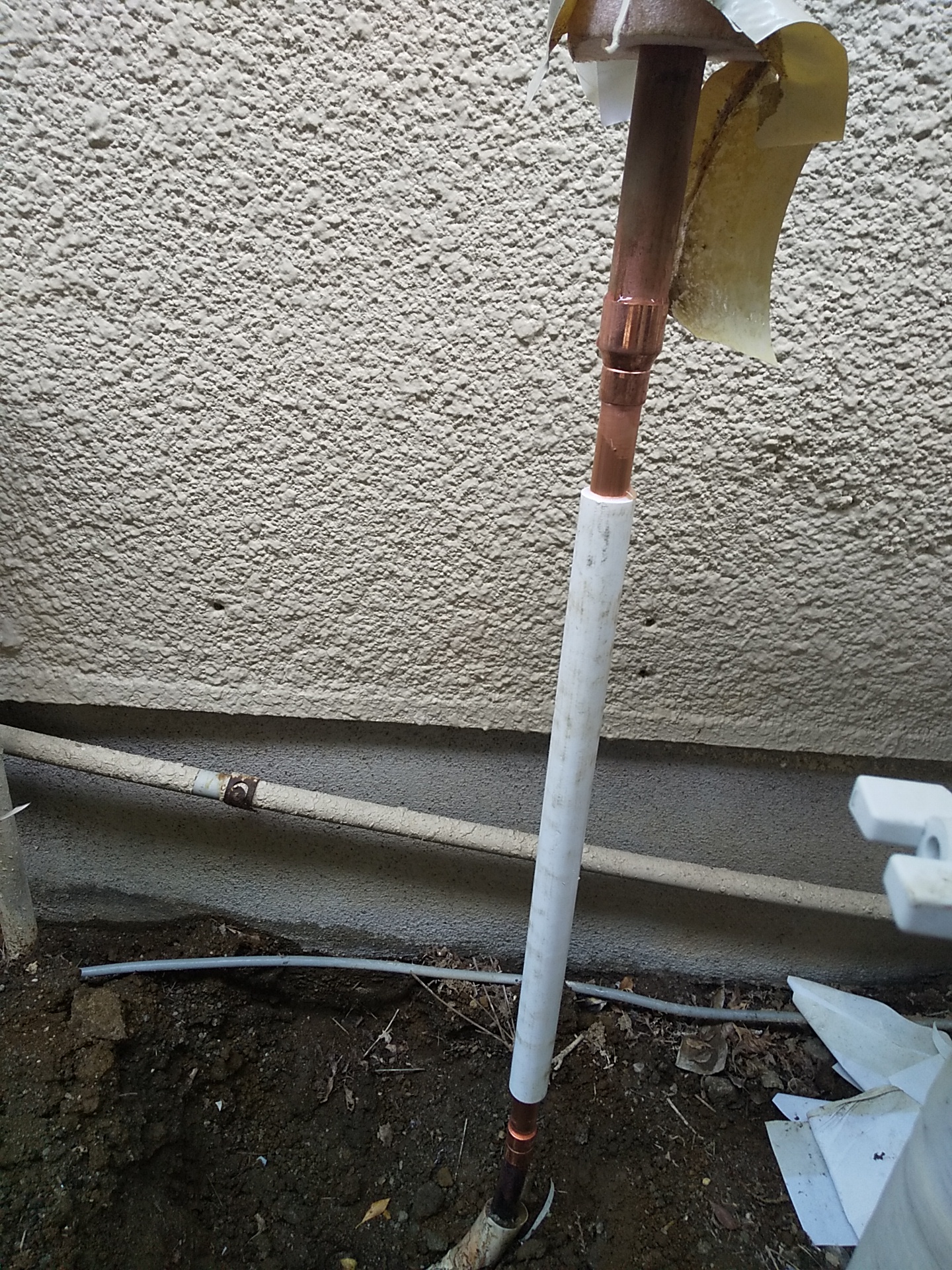既存の劣化した給湯管を一部撤去し、新たに銅管にて補修・接続を行いました。