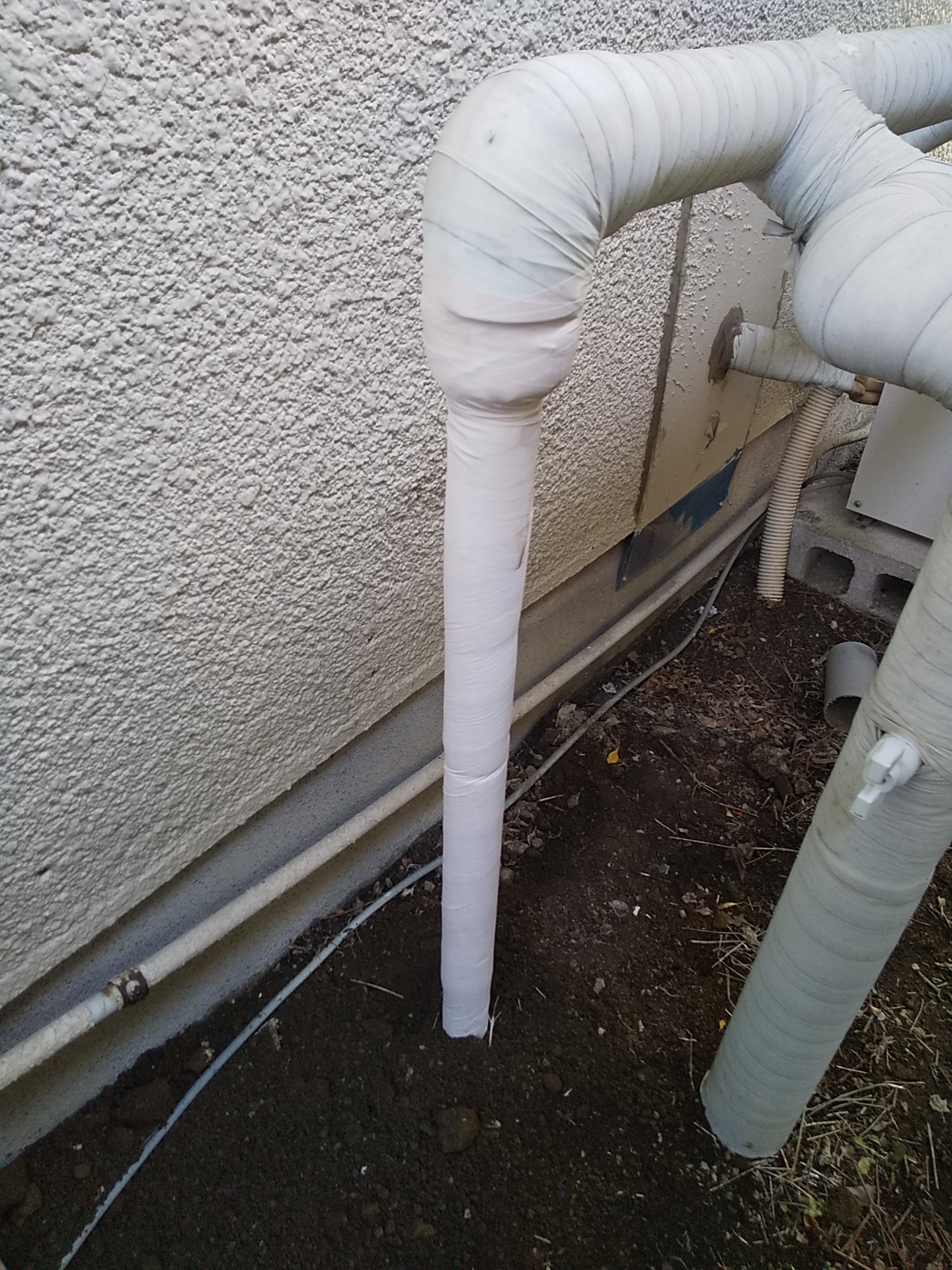 接続後は保温材を巻き直し、外気の影響を受けにくいように仕上げました。最後に通水確認を行い、水漏れがないことを確認しています。