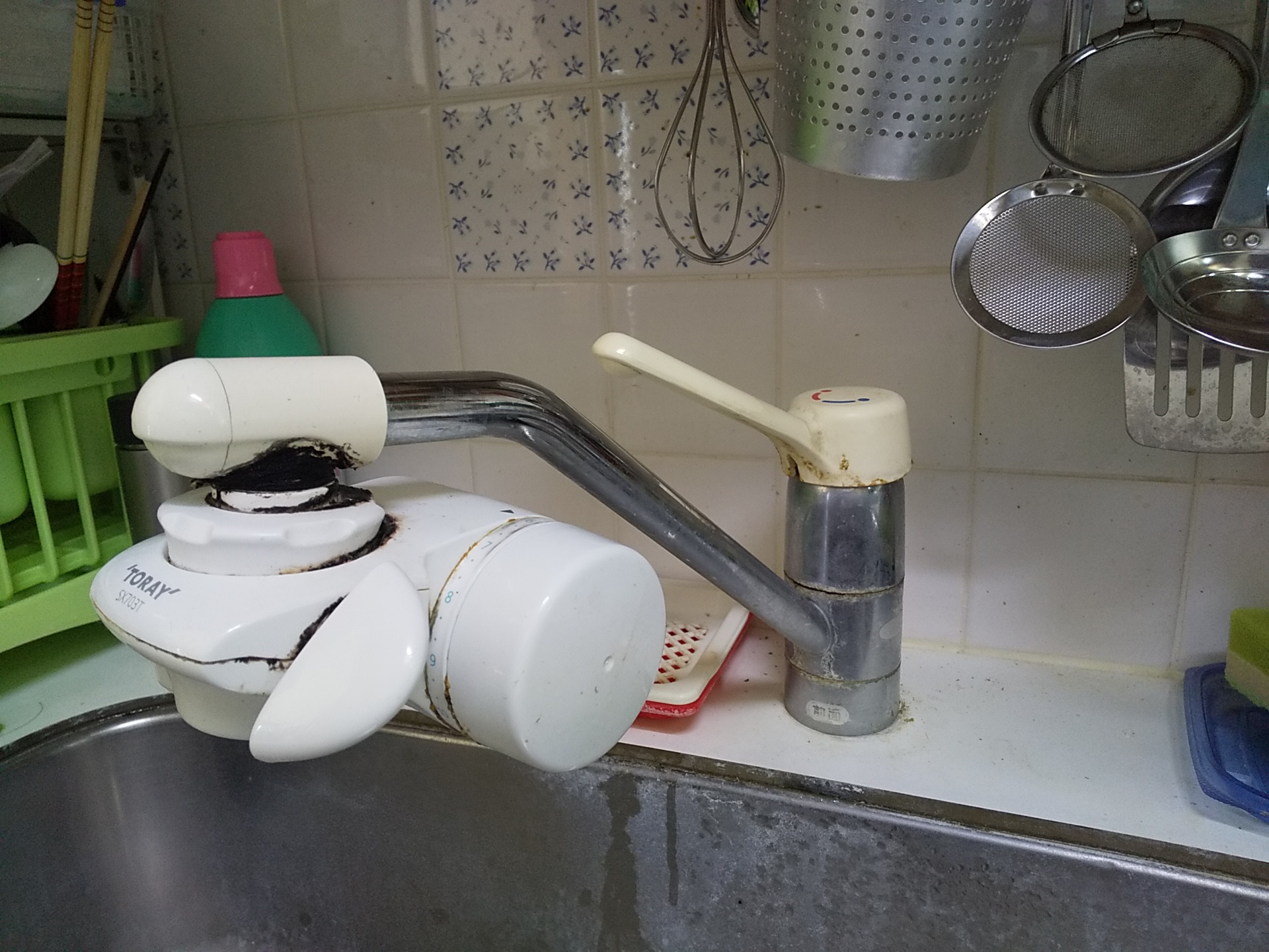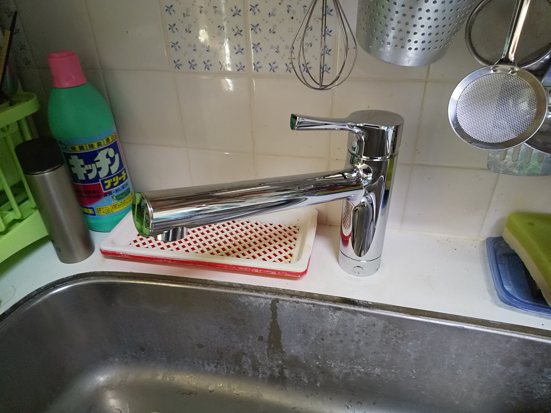 台所水栓の経年劣化により水漏れが発生していたため、交換対応となりました。
