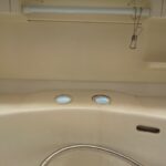 こちらもお風呂の水栓同様、古いということもあり水栓丸ごとの交換をご依頼いただきました。こちらは同じ型がもう出回っておらず、同メーカーの後継にあたる、KM8007S3CNに交換させていただきました。鎖ゴム栓式の洗面器だったので、ヒートン(鎖を持つ部分)付きのタイプになります。