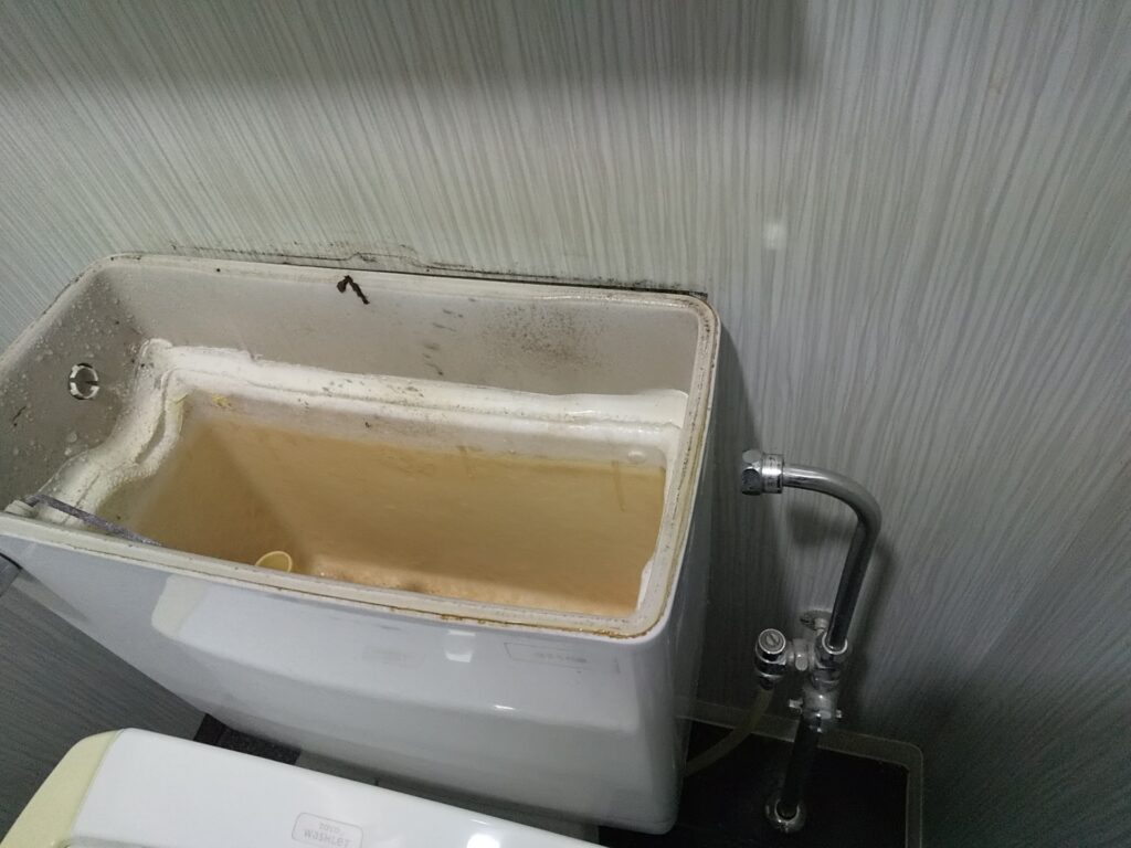 経年使用によって発泡スチロールが水分を吸収し、わずかでも膨張が続くと徐々に歪みが生じます。さらに、水垢やカビが断熱材表面に付着すると、素材が弱くなり剥がれやすくなります。こうした劣化進行を放置すればタンク内部のスペースが狭まり、給排水部品に干渉し、動作不良や水漏れを引き起こすのです。