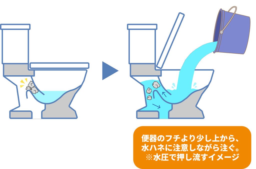便器や排水管は陶器や塩化ビニール製の場合が多く、一般的な耐熱温度は60℃です。急激な温度変化に弱い傾向があります。熱湯を注ぐと配管がひび割れを起こすことがあり、一気に水を流すと詰まり部分に圧力がかかりすぎて悪化することがあります。詰まりや水漏れは焦ってしまいがちですが、かえって損害を大きくするリスクがあるので厳禁です。