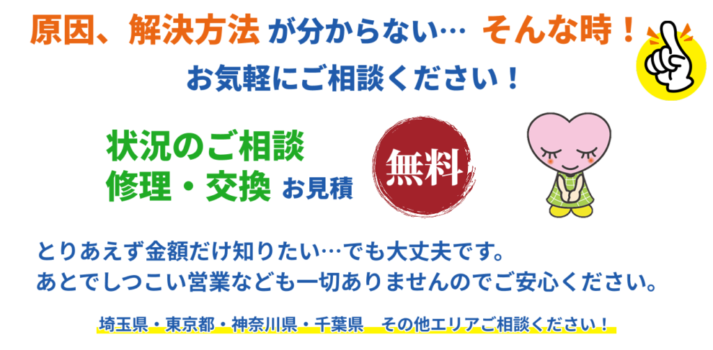 自分で対応しても改善が見られない場合や、使用年月が長く、他にも故障のリスクを抱えていそうと判断できた場合は、早めに専門業者へ相談することがおすすめです。特に水回りは放置すると、建物自体まで深刻な被害を招きやすいため、安全第一で進めることが大切です。