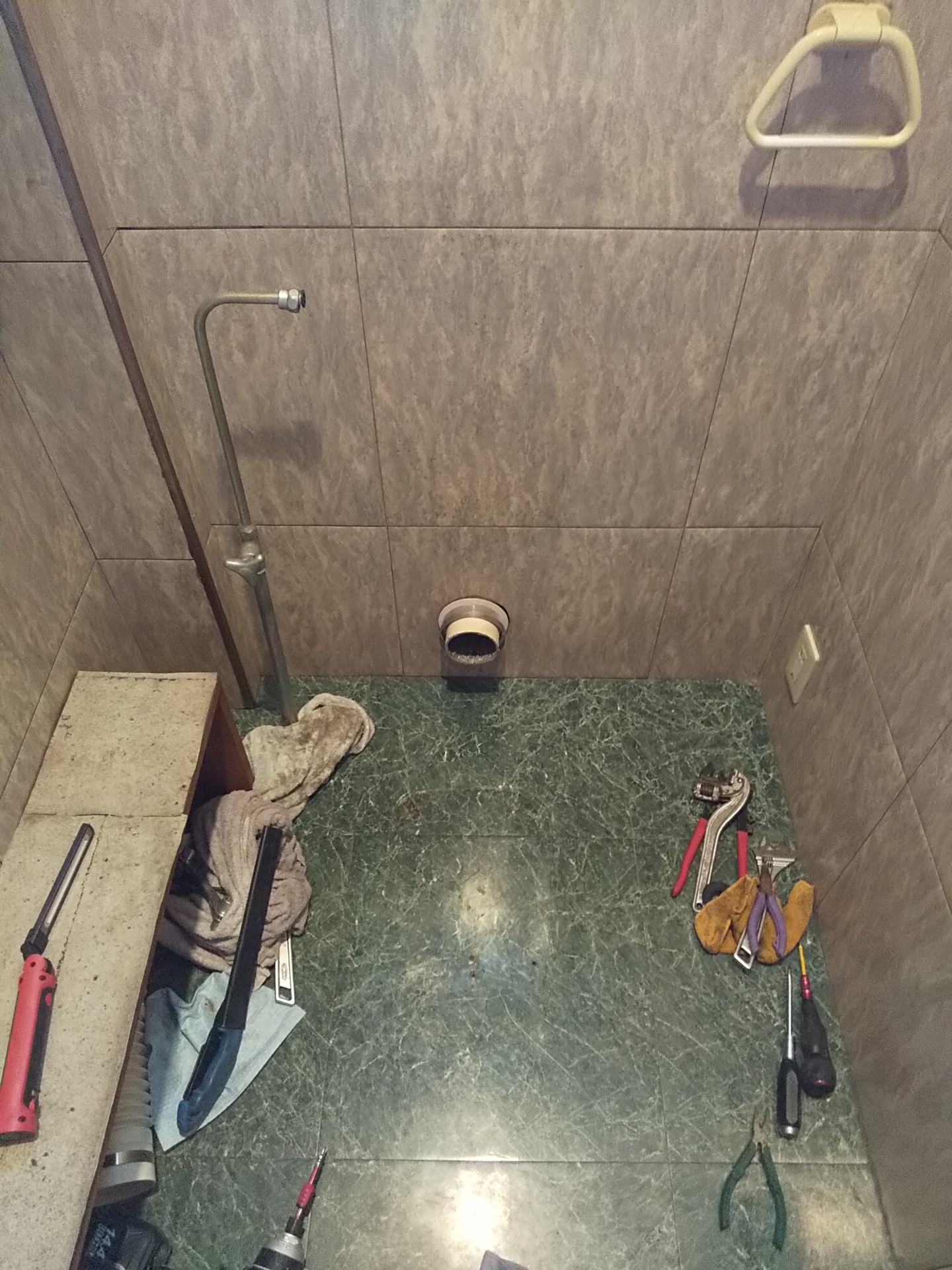 トイレ交換は一見シンプルに見えますが、特に壁排水の場合は排水位置のズレが出やすく、納まりの調整が重要になります。今回は排水ジョイントも新しくしているため、その分しっかり位置出しを行いました。